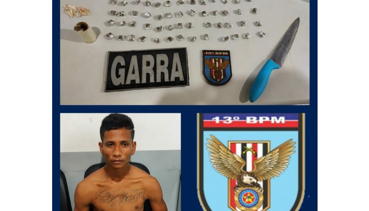 13º BPM PRENDE HOMEM POR TRÁFICO DE DROGAS NA ÁREA DO BAIRRO SÃO RAIMUNDO