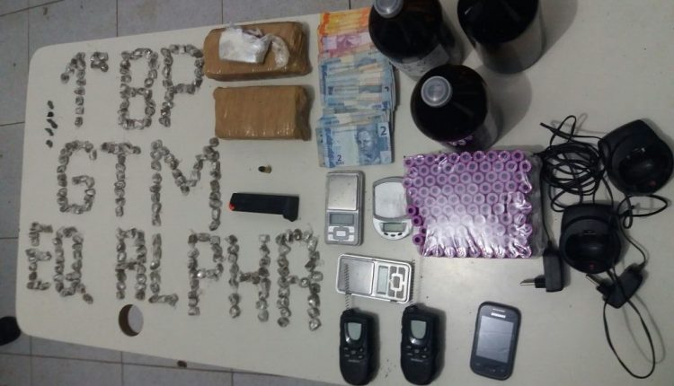 Durante um ronda nas ruas do bairro citado, a guarnição avistou Adriano em atitudes suspeitas, logo foi feito o trabalho de abordagem ao mesmo, após uma vistoria minuciosa, a polícia encontrou uma quantia de 102 reais em espécie e pequenas porções de maconha e crack. Em seguida a guarnição se deslocou até a residência de Adriano, onde foram apreendidas 237 papelotes de maconha, 2(dois) tabletes do mesmo entorpecente, 3 litros de um produto similar a “Loló”, 95 frascos para armazenar a droga, 3 balanças de precisão, 2(dois) rádios comunicadores, aparelhos de celulares e um carregador (.40) com uma munição.