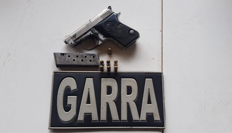 Durante a revista na mochila do suspeito foram encontradas uma gandola (uma peça de vestuário de uniforme militar), uma calça rajada, uma pistola pt51 de numeração: H15778 e calibre 635 com carregador, 7 munições intactas. Diante dos fatos o mesmo foi apresentado no Plantão do Maiobão para serem tomadas todas medidas cabíveis.