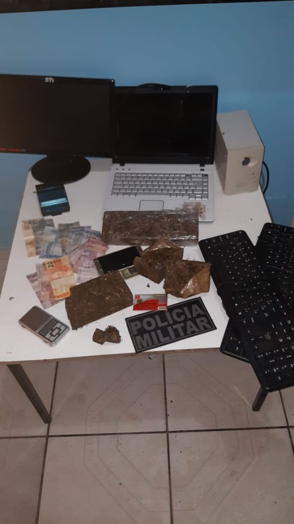Após buscas pela residência, a polícia encontrou no interior do domicílio dentro de uma geladeira, aproximadamente 2,5kg de uma substância similar a maconha. Dentro de uma sucata de veículo abandonado no quintal, também foi localizado material de informática, objetos reconhecidos pelo proprietário de uma Lan House, que semanas atrás havia sido furtado.