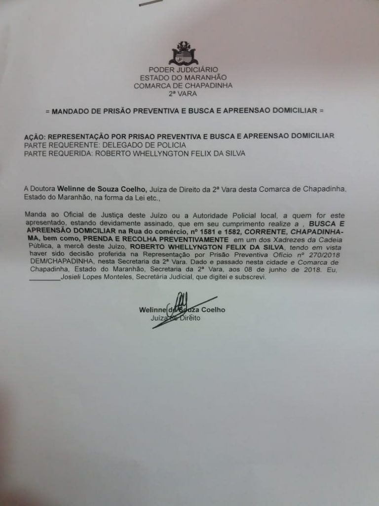 Na manhã deste sábado (09), a Equipe de Policiais da 3°DRPC – Chapadinha através da Delegacia Especial da Mulher -DEM, cumpriu Mandado de Prisão Preventiva e Busca e Apreensão domiciliar contra Roberto Whellyngton Felix da Silva, em razão da suspeita de que o mesmo seja autor de uma série de estupros e tentativas de estupros praticado em Chapadinha e cidade vizinha.