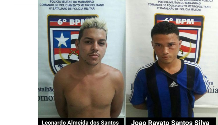 Polícia Militar do Maranhão por meio do 6º Batalhão realizou no último domingo (11), por voltas das 16h30, no bairro do Tirirical a prisão dos indivíduos, Leonardo Almeida dos Santos (22) e João Rayato Santos Silva (19), onde foram autuados por roubo qualificado pelo emprego de arma e pelo concurso de pessoas.