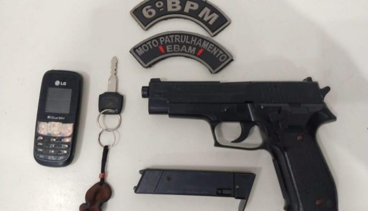 Um homem identificado como Paulo Cícero Marques da Silva (19), foi preso em flagrante na noite da última terça-feira (14), pelos crimes de porte de simulacro de arma de fogo e por roubo de uma motocicleta que foi tomada de assalto horas antes, no bairro da Cidade Olímpica. A prisão foi executada por homens do Esquadrão Garra da Polícia Militar, lotados no 6ºBPM.
