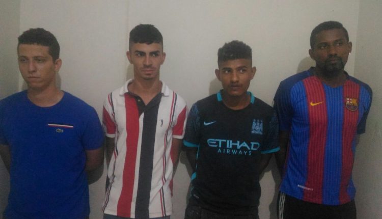 O 9° BPM por intermédio do Gtm Bravo, prendeu na noite da última terça-feira (18), os nacionais Francisco Guilherme Costa Cardoso de Abreu, 26 anos, Victor Hugo Moura Silva Melo, 26 anos, Maurício Gaspar Sousa, 22 anos e Anderson Jorge Nunes da Silva, 23 anos. Todos foram presos por porte ilegal de arma de fogo, no Residencial João Alberto, em São Luís.