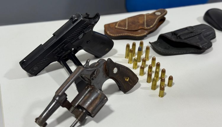 Foram apreendidos um rifle calibre .38 com munições, uma pistola calibre .40, munições de calibre .380 e .38, um revólver calibre .38, além de uma pistola de airsoft. O material estava distribuído entre os locais vistoriados.