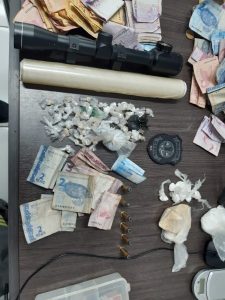 Além das prisões foram apreendidas durante as buscas a apreensão, 01 revólver calibre 38, municiado com 06 seis munições intactas do mesmo calibre, crack, cocaína e maconha e uma quantia em dinheiro, resultante da comercialização das drogas.