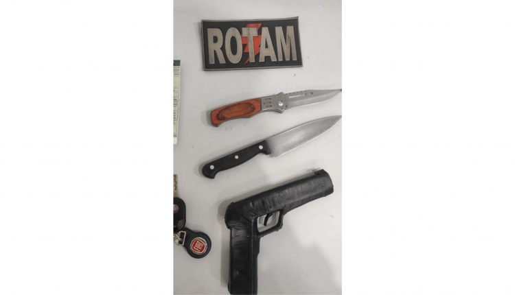 Na ação foram detidos quatro suspeitos autores do delito. Com eles foram apreendidos: um Fiat Mobi, chave do veículo, um simulacro de arma de fogo, duas facas e R$ 32,75 (trinta e dois reais e setenta e cinco centavos).
