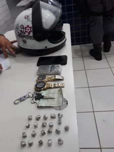 Em deslocamento para área de serviço, passando pelo bairro do Tirirical, uma guarnição do Choque avistou dois elementos em atitude suspeita em uma motocicleta vermelha de placa PTI 2479. Com a aproximação da viatura para fazer a abordagem, um dos elementos dispersou na avenida um pacote onde se encontravam 21 substâncias similar a maconha, uma balança de precisão, joias, um aparelho de celular, além da motocicleta.