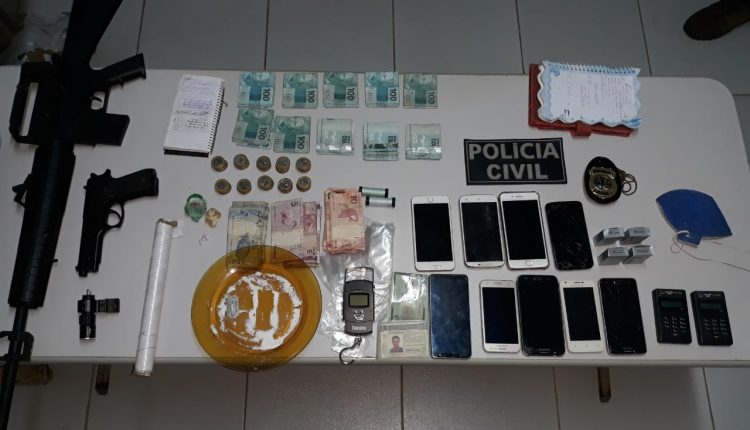 Além disso foram apreendidos mais dois simulacros de arma de fogo, um em formato de pistola e outro em formato de fuzil. Os presos em flagrante foram identificados como Rosiete da Conceição Borges, conhecida como “Rose” e Alex Alexandre Santos Pereira.
