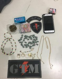 Uma guarnição do Grupo Tático Móvel (GTM) lotada no 6ºBPM, realizava rondas preventivas pelo bairro, quando avistou o casal em atitude suspeita em um local conhecido pelo intenso tráfico de drogas, que ao avistarem as viaturas, abraçaram-se na tentativa de despistar os policiais, porém sem sucesso.