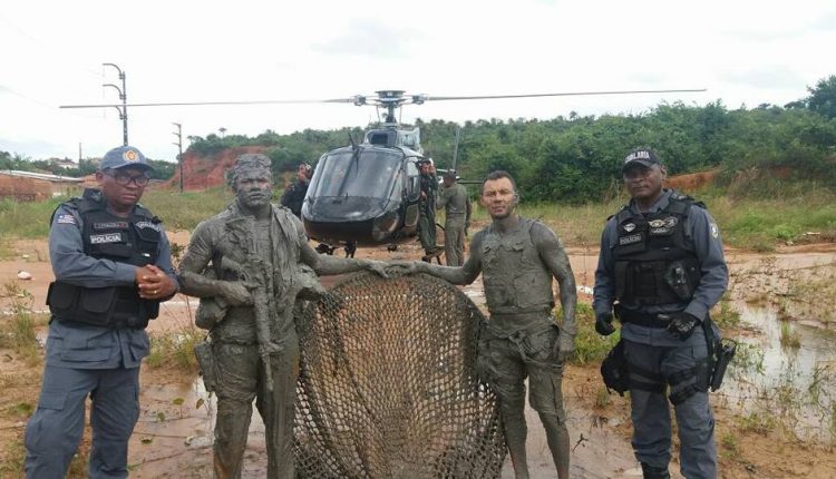 Dois operadores da cobra 07 entraram no mangue e ajudaram na prisão. Em seguida, os presos foram retirados do local em duas pernadas com o puçá e levados para um local seguro.