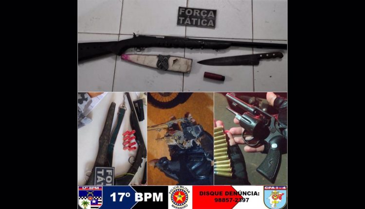 Com ações ostensivas e preventivas, o 17º Batalhão de Polícia Militar realizou a apreensão de mais cinco armas de fogo, no último fim de semana, totalizando 98 somente este ano. Dentre as ações do fim de semana, os policiais apreenderam os artefatos na Zona Rural de Codó, durante o atendimento de uma ocorrência de ameaça.