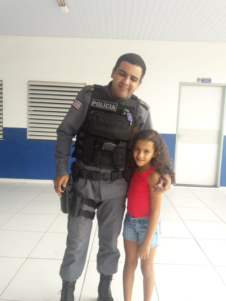 A jovem que completou 08 anos de idade, pediu aos familiares como presente de aniversário conhecer a sede do batalhão, onde foi trazida pela tia identificada com Gilvana.