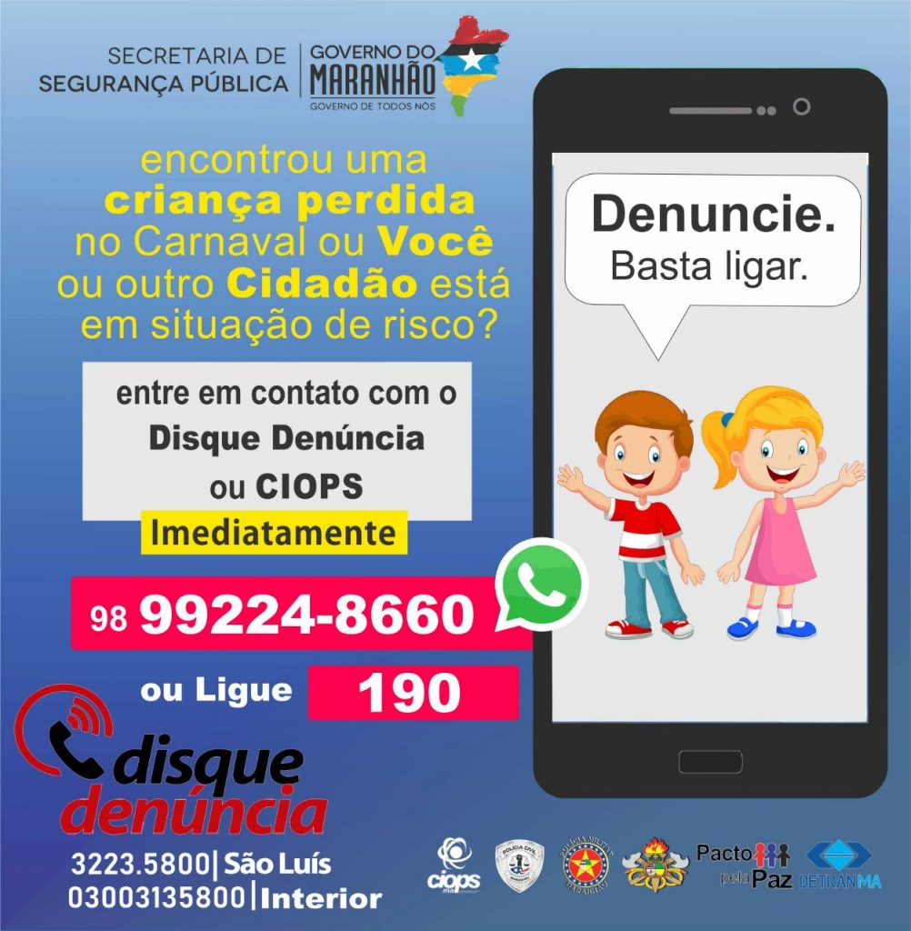 Os maranhenses contam ainda com a Central do Disque Denúncia por meio dos e o Centro Integrado de Operações de Segurança – CIOPS, através dos números telefônicos listados abaixo.