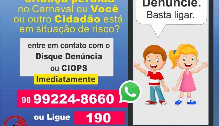 Uma observação diagnosticada pelo secretário de segurança, Jefferson Portela é o quesito segurança com as crianças, que durante o período de festa acabam por se perder dos pais ou responsáveis. Por isso é imprescindível que toda a população saiba como realizar eventuais denúncias.