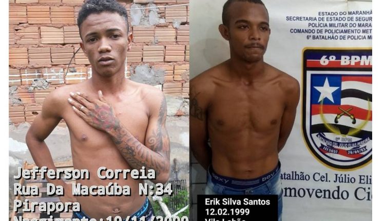 Na manhã do último domingo (25), em resposta rápida ao combate à criminalidade, a Polícia Militar do Maranhão através do 6ºBPM, conseguiu lograr êxito nas prisões em flagrante de Erik Silva santos (19) e Jefferson Correia (18). Os dois suspeitos teriam cometido um assalto a residência nas proximidades do antigo clube Jaguarema, em São Luís.