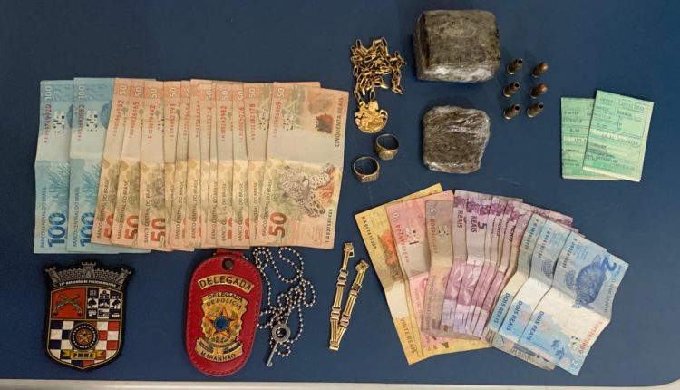 Segundo a Polícia Civil, as prisões foram executadas em flagrante na Estrada de Ribamar, em São José de Ribamar. Na abordagem, foram encontradas dentro veículo dos suspeitos, duas porções da substância semelhante maconha, seis munições cal. 380, a quantia de R$ 992,00 reais em espécie, bem como um pedaço de papel com anotações do tráfico.