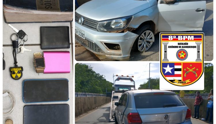 A PM realizava patrulhamento nas proximidades da Ponte do Ipase, quando recebeu informes de que um pedestre teria sido vítima de um roubo, onde alguns elementos em um veículo VW/GOL de cor prata de placas QQH-3380, subtraíram seu aparelho de celular.