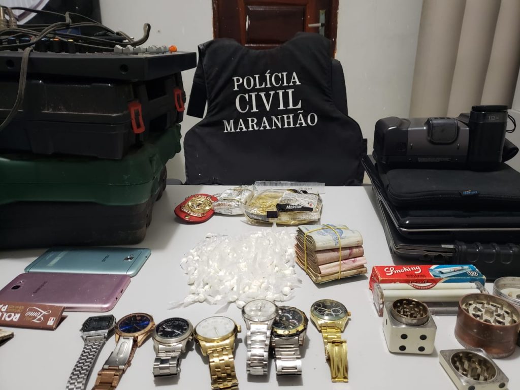 Segundo as autoridades policiais, na residência do suspeito, localizada no Bairro Trizidela, foram apreendidas 200 (duzentas) “trouxinhas” contendo substância com características de cocaína, a quantia de R$ 1.689,00 (um mil seiscentos e oitenta e nove reais), dois aparelhos celulares, dois notebooks, vários relógios, binóculo, além de outros objetos, tudo sem comprovação e com origem provável do tráfico por drogas.