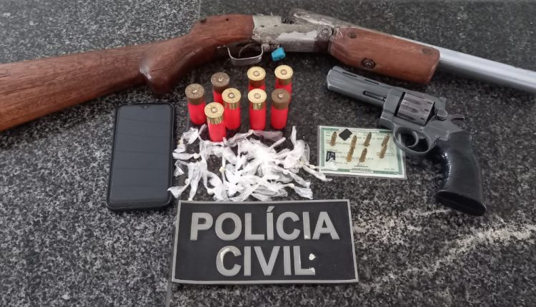Segundo a Polícia Civil ,na oportunidade, foram apreendidos, dentre outros objetos, uma espingarda de fabricação caseira calibre 12, oito munições calibre 12, um revólver calibre 22 com capacidade para 10 munições, sete munições calibre 22 e 31 (trinta e uma) “pedras” de substância análoga a “crack” prontas pra comercialização.