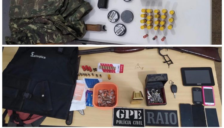 A equipe do Grupo de Pronto Emprego (GPE) da Polícia civil realizou diligências com o apoio da Equipe Raio do 14ºBPM prenderam em flagrante delito 2 (dois) homens e 01 (uma) mulher apontados como participantes do crime e apreenderam materiais relacionados ao assalto como 01(uma) espingardas 36;01(um) simulacro de pistola 9mm; munições de calibre 36; 01(um) colete balístico; 05 aparelhos celulares; 01(um0 rifle calibre 44; munição calibre 380 e 44 e drogas.