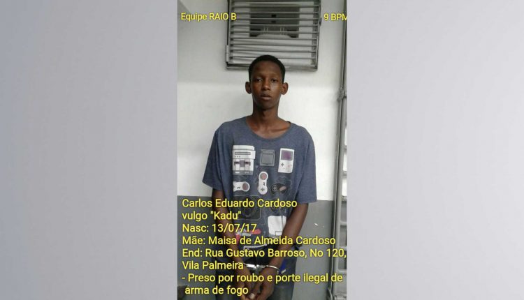O 9° BPM, por intermédio da equipe Raio Bravo, prendeu na noite da última quinta-feira (17), por volta das 22h:30, o nacional Carlos Eduardo Cardoso, 18 anos. O suspeito foi preso por porte ilegal de arma de fogo, no bairro Radional, em São Luís.