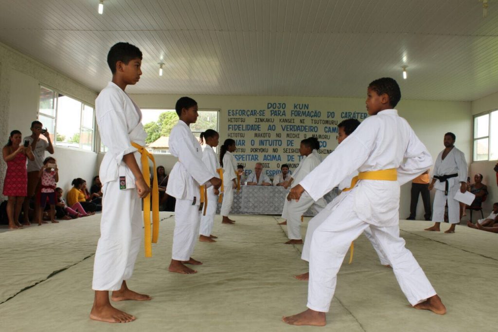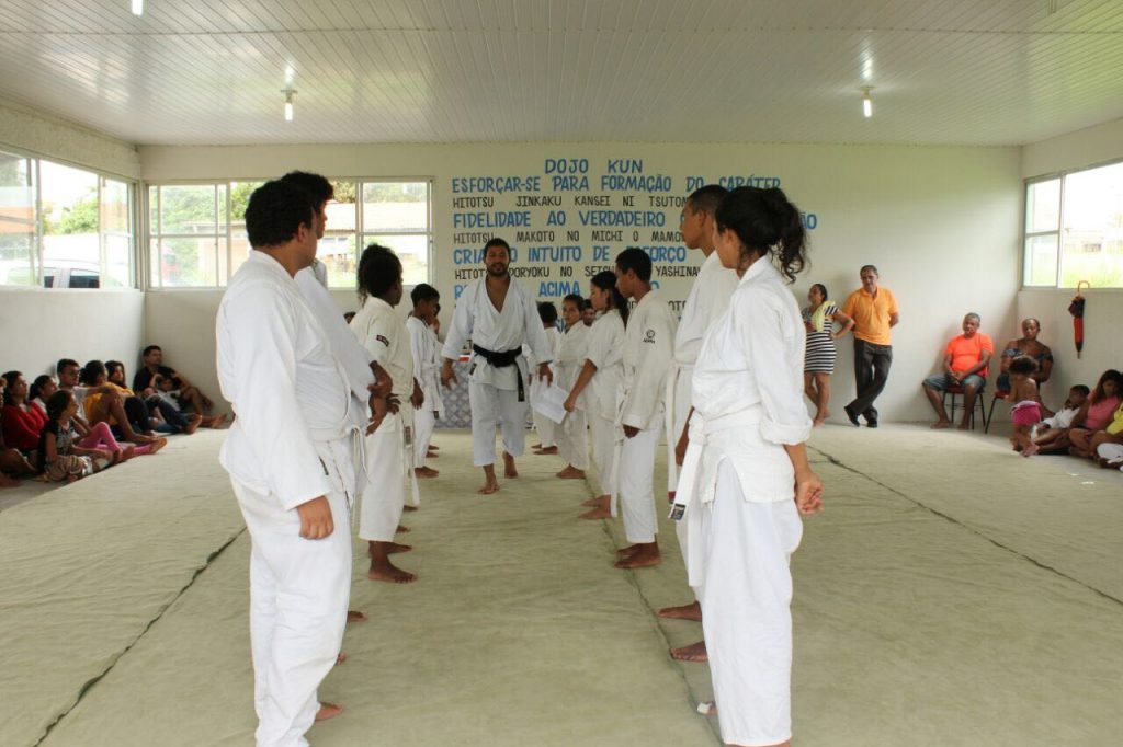 “Quem teve a idéia do projeto foi o Doutor Cristiano Moreira, que também é karateka, ja treinava comigo a um tempo e quando teve a ideia me chamou pra ser o professor no projeto. A idéia do projeto é dar oportunidade para os jovens, oportunidade de conhecer uma arte nova, onde poderão trabalhar a motricidade, ter um melhor entendimento do corpo como um todo, é uma arte onde poderão realmente se desenvolver. Também tem a parte da socialização, da convivência com outras crianças, isso tudo ajuda em seu desenvolvimento. E depois de um ano e meio de projeto, podemos ver a diferença no comportamento das crianças, nas atitudes, vejo mais confiança, elas sabem que são capazes, e que todas as pessoas tem um pontencial enorme, e algumas só precisam de uma oportunidade”. Relatou o Karateca e instrutor Marcos Aurelio.