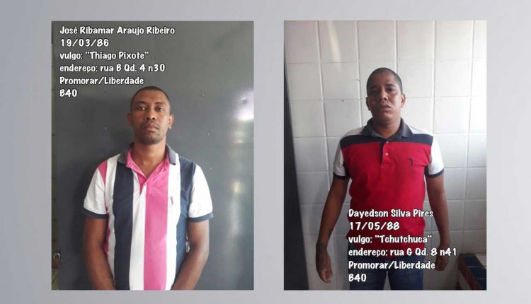 GSA do 9° BPM, juntamente com a equipe 04 da DIAE, prenderam, na tarde da última quinta-feira (17), por volta das 16h:50, os nacionais José Ribmar Araújo Ribeiro, 31 anos, vulgo “Thiago Pixote” e Dayedson Silva Pires, 29 anos, vulgo “tchutchuca” . Ambos foram presos por cumprimento de mandado de prisão pelo crime de homicídio no bairro da Liberdade, em São Luís.