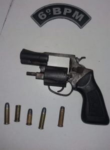 Já no endereço foi localizado o autor em estado de embriaguez e posteriormente a autorização de entrada na residência pela proprietária, iniciou-se as buscas pela arma do crime, sendo localizada dentro de um armário por trás das gavetas. George Moraes estaria utilizando a referida arma para ameaçar e coagir psicologicamente sua esposa.