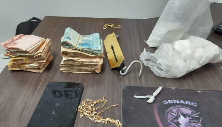 O suspeito foi abordado pela equipe da Denarc quando chegava em sua residência situada no bairro Planalto Boa Esperança. No imóvel do suspeito, a equipe encontrou a quantia de R$ 9.524,00 (nove mil, quinhentos e vinte e quatro reais), em espécie, além de diversas anotações contendo uma espécie de contabilidade do tráfico de drogas com nome de pessoas, quantidade de drogas e quantias pagas ou devidas.