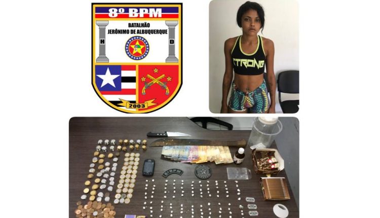 Uma mulher identificada como Josineia Monteiro Sousa, vulgo “Lavinha” (22), foi presa em flagrante na tarde desta segunda-feira (15) pela Polícia Militar através do 8°BPM, suspeita pelo crime de tráfico de drogas no bairro Jardim Turú, em São Luís. Foram apreendidas 107 pedras de crack, 2 (dois) cigarros de maconha, cerca de 478 reais em espécie, aparelhos de celulares e material para embalar o entorpecente.