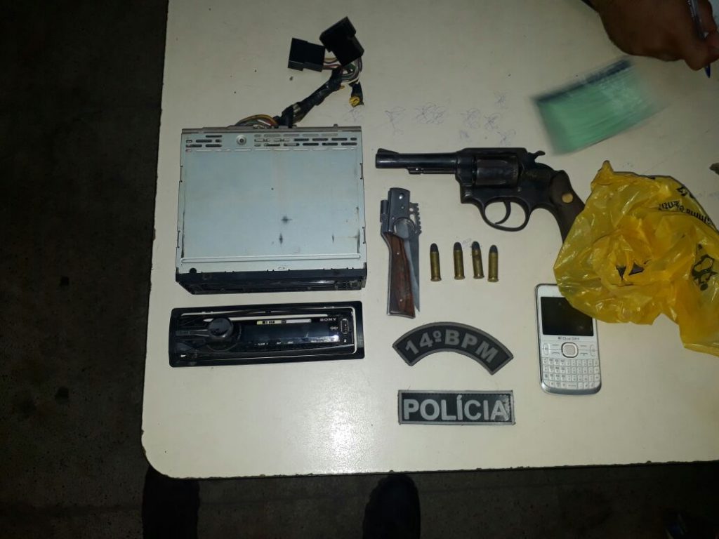 Assim que avistou a guarnição o indivíduo identificado por David Sousa Soares tentou se evadir do local com a arma em punho, vendo a situação se desfez da mesma ao descer do ônibus pela porta de traz, mais com um cerco bem feito em operação conjunta com o policiamento da Radiopatrulha (RP) e a GSA, tivemos êxito na operação capturando o elemento, com ele foram encontrados além da arma de fogo calibre 38 contendo quatro munições, um(01) canivete, um(01) aparelho de som automotivo, um(01) celular, um(01) molho de chaves, quatro(04) talões de cheque (com 15 folhas de cheque ao todo),quatro(04) documentos de veículos, um (01) boleto bancário, dada a  voz de prisão foram feitos os procedimentos e logo foi conduzido para o Plantão Central junto os objetos apreendidos para ser tomadas as medidas cabíveis, ficando a disposição da justiça. (O mesmo não apresentando lesões).