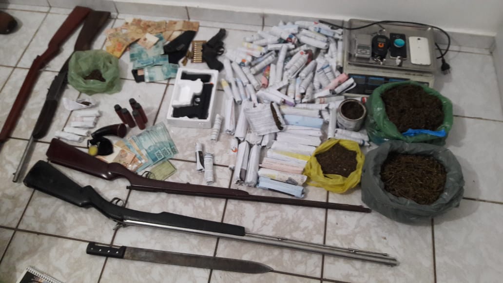 O Delegado Oséias Cavalcanti relatou ainda, que na operação foram apreendidas cinco armas de fogo, sendo um revólver calibre 38, quatro espingardas, diversas munições, aparelhos celulares e uma grande quantidade de maconha e dinheiro; além de balanças de precisão e de materiais destinados à embalagem dos entorpecentes.