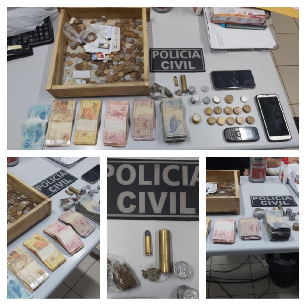 Foram apreendidos maconha, crack, cocaína, um revólver, uma espingarda, munições de diversos calibres, veículo com chassi e numeração de motor suprimidos e animais silvestres que estavam em cativeiro, além de farta quantidade de medicamentos de uso controlado que eram comercializados de forma irregular.
