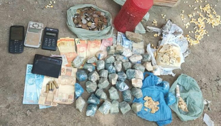 Já na manhã desta sexta-feira (18), o procurado já se preparava para fugir quando foi surpreendido pela polícia. A droga estava enterrada no quintal, com características de crack. Também foi encontrada certa soma em dinheiro, munição, uma balança de precisão e uma máquina de cartão de crédito.