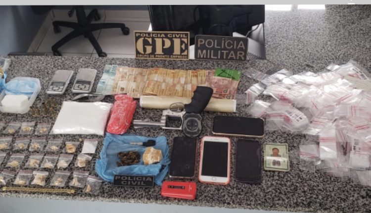 Durante a operação, ao dar cumprimento no Mandado foi constatada a prática do crime de Tráfico de Drogas sendo apreendida grande quantidade de substância semelhante à cocaína, crack e maconha como também apetrechos para acondicionamento da droga.