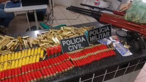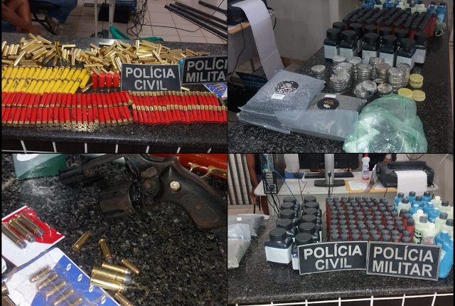 No local foi apreendido, um revólver calibre 38 de nº JA 52236; quatro espingardas do tipo Bate Buchas; 84 tubos contendo pólvora; 59 caixas de espoletas; 11 tubos contendo pólvora CBC; três cartuchos calibre 12 intactos; 40 cartuchos calibre 20 intactos; 69 cartuchos calibre 32 intactos; 85 caixas contendo espoletas da marca Rossi, 100 espoletas para cartucho, além de 77Kg de chumbo.