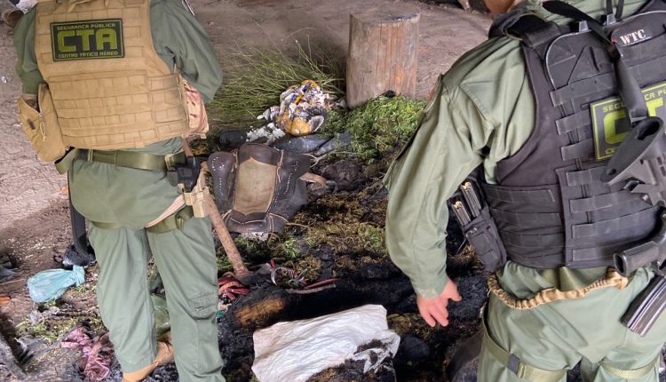 Após a chegada no local do plantio, foi observado pela equipe, que a maconha haviam sido arrancada poucas horas antes pelos roceiros, daí foi feito uma busca nas proximidades e logrado êxito na localização do material, o qual já estava sendo preparado para distribuição. A equipe realizou a erradicação pelo processo queima e destruição da plantação numa área de aproximadamente 8.400m² , com cerca de 42 mil pés,sendo 05 pés por cova e mais 35kg de droga pronta para o consumo. Não havia nenhum indivíduo no local para que fosse apresentado na delegacia.