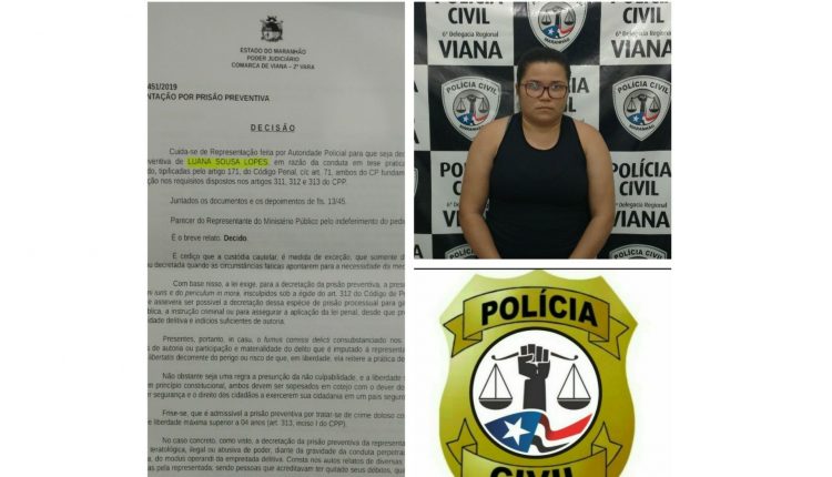 Uma operação batizada “Estorno de Azar”, foi deflagrada na tarde da última quarta-feira (10), pela Polícia Civil, através da 6ª Delegacia Regional de Viana, no intuito de combater o crime de estelionato na cidade. Na ocasião foi cumprido um mandado de prisão contra Luana Sousa Lopes, acusada de aplicar golpes à uma casa lotérica do município.
