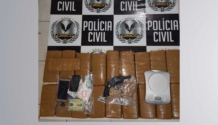 Na residência ainda foi encontrado, em um dos cômodos, 22 tabletes de maconha, de aproximadamente 01kg cada; um revólver 38 municiado e uma balança de precisão para pesagem. Estava ainda na localidade Ulliana Costa de Melo, companheira de Diego Alves, além de um RG de um homem identificado por Fernando Machado de Vasconcelos, “vulgo Geleia”, próximo do entorpecente encontrado.