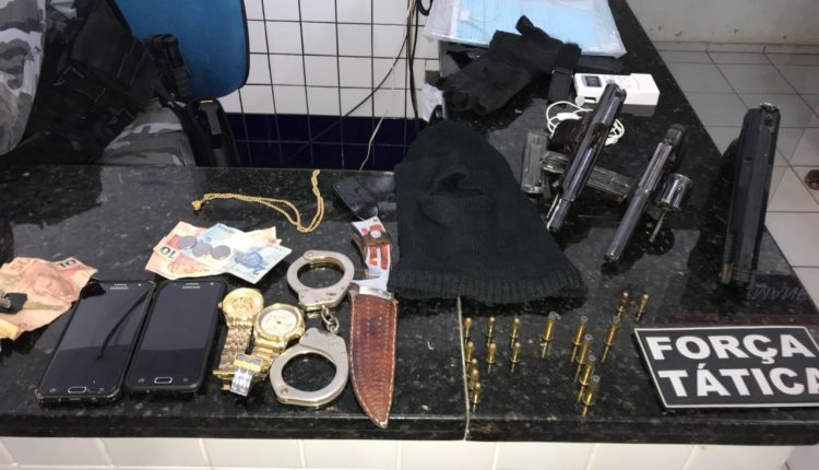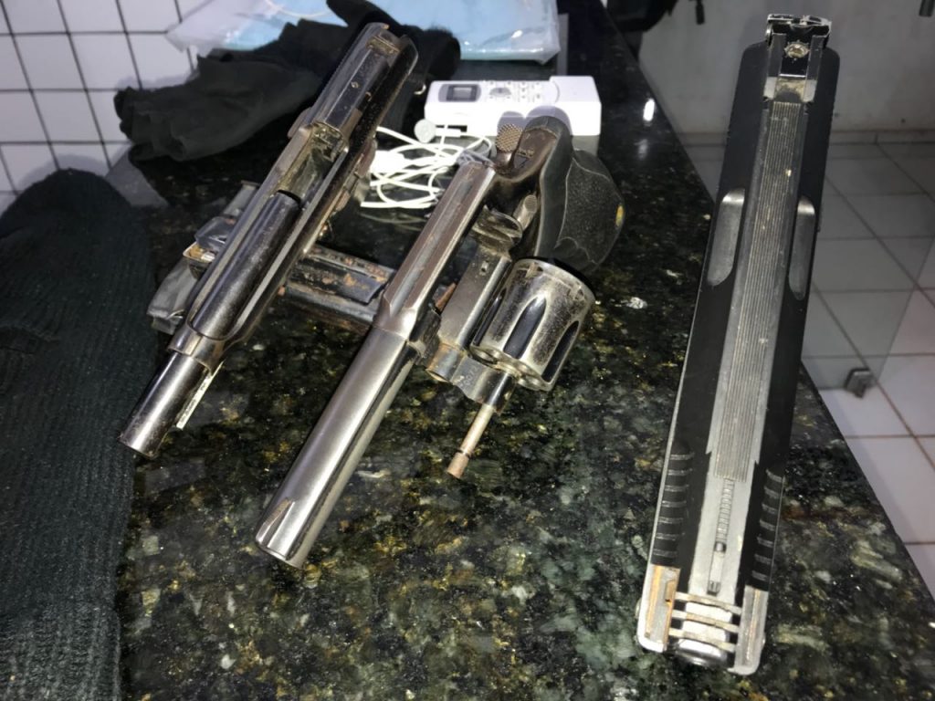 Os militares por meio da Força Tática se dirigiram até o local citado e surpreendeu o grupo, que estava fortemente armado, com pistolas e revólveres.
