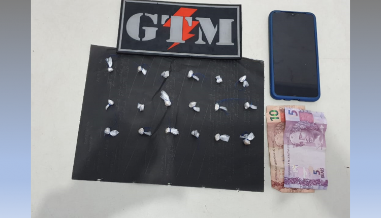 Ao fazer buscas pelo local foi constatado que o material dispensado pelo suspeito continha 18 trouxinhas de uma substância semelhante à crack, na abordagem ao homem foi apreendido a quantia de R$15,00 reais e um celular.