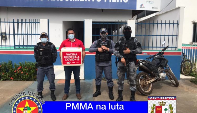 Na tarde desta terça-feira (09 de fevereiro) a guarnição comandada pelo Cap Nunes, subcomandante do 26 BPM, deu apoio a equipe da Secretaria Estadual de Saúde, na distribuição das doses da vacina contra o coronavírus.