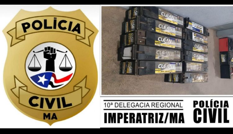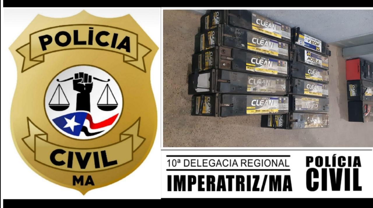 A Polícia Civil do Estado do Maranhão, através da 10ª DRPC, assim como por intermédio do GRUPO DE PRONTO EMPREGO – GPE, apreendeu 21 (vinte e uma) baterias que foram furtadas de torres de telefonia, na cidade de Imperatriz (MA) e na região Tocantina.