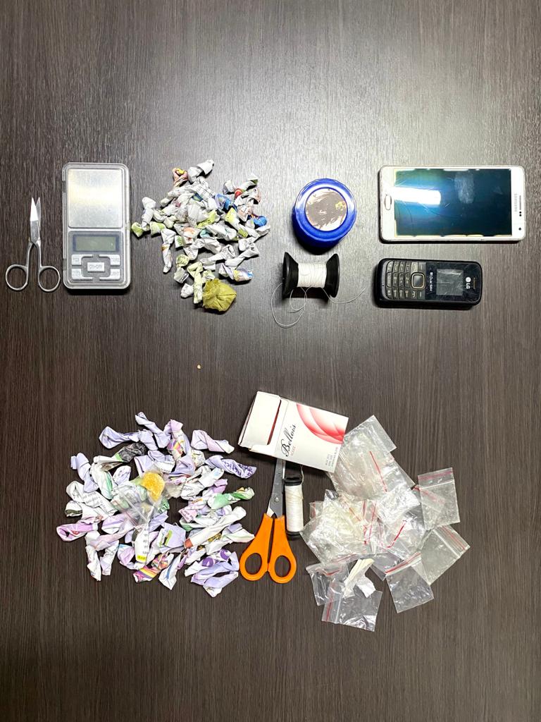 Já na residência alvo da apuração , os policiais encontraram um adolescente em atitude suspeita. No interior do imóvel em que o mesmo se encontrava , os policiais arrecadaram 42 porções de substância em coloração amarelada, semelhante ao entorpecente conhecido popularmente como crack, e um invólucro plástico transparente contendo pequena pedra de substância semelhante a crack, além de diversos invólucros plásticos vazio, tesoura e tubo de linha de costura, para embalagem da droga.