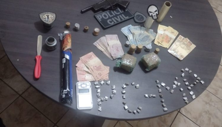 Também foram apreendidos material de embalagem, balança de precisão, dinheiro trocado e uma arma de fogo de fabricação artesanal.