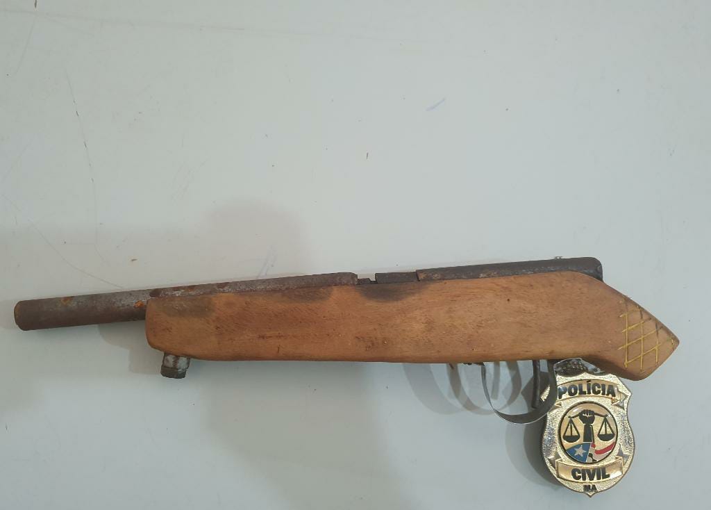 Na residência do suspeito foi encontrada, ainda, uma arma de fabricação caseira, o que poderá implicar, também, sua responsabilização pelo crime de posse irregular de arma de fogo de uso permitido, previsto no artigo 12 do Estatuto do Desarmamento.