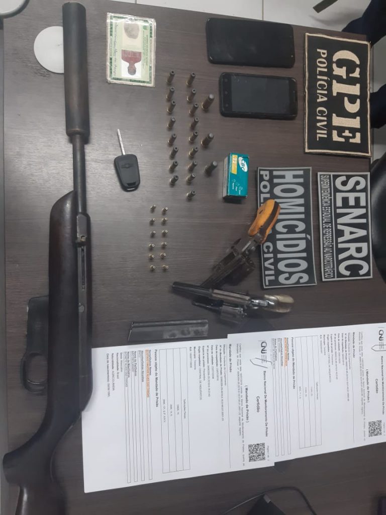A operação realizada nesta quarta-feira, por meio da Polícia Civil do Maranhão, através da Denarc de Timon, da Delegacia Regional de Homicídios de Timon (DRH) e o Grupo de Pronto Emprego (GPE) da 18º DRPC de Timon, resultando nas prisões dos dois acusados identificados por Gustavo Vinícius Alves das Chagas, conhecido por “Pacú”, 23 anos e Alaílson de Sousa Silva, conhecido por “Maguim do Celeiro”, 25 anos. Durante a ação da polícia pela prisão dos criminosos foi encontrado na casa onde estava Gustavo Chagas, 01 Rifle calibre 22, com 12 munições do mesmo calibre, além de 01 Revólver calibre 32, com 06 munições intactas. No rifle, estava um acessório conhecido como “silenciador”.Já na casa onde houve a captura do Alaílson de Sousa, foi encontrado 01 Revólver calibre .32 além de 11 munições do mesmo calibre e ainda 03 munições de calibre .44 (calibre restrito).