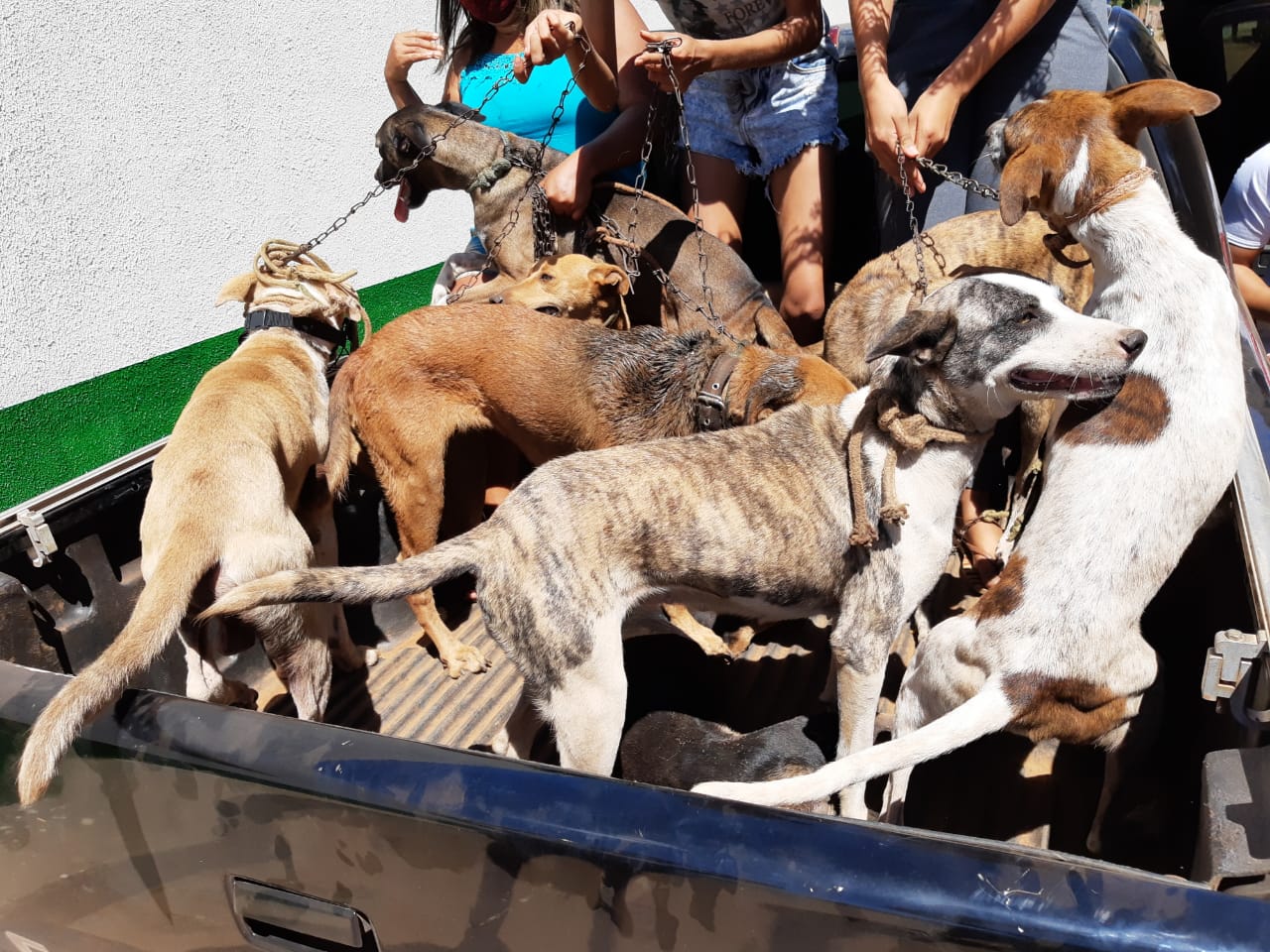 Logo na chegada, foi possível observar que os cachorros estavam acorrentados em árvores, sem que houvesse água ou comida ao alcance deles. Além disso, alguns cães apresentavam feridas visíveis e outras marcas de maus-tratos, além de desnutrição.