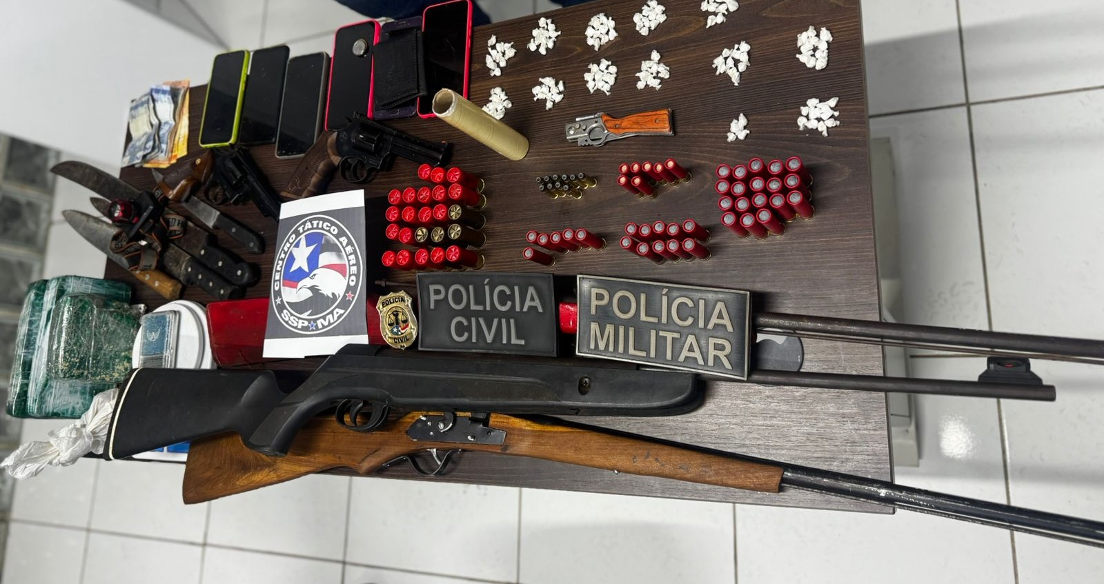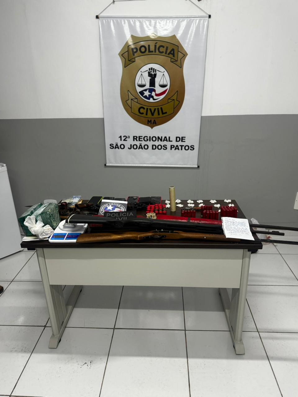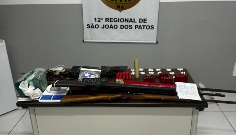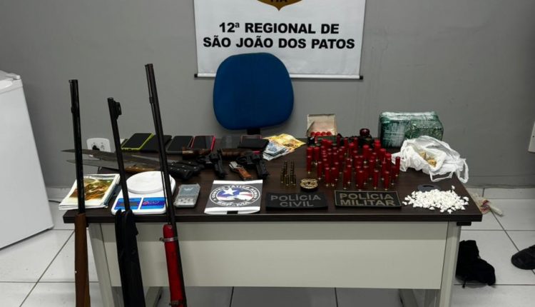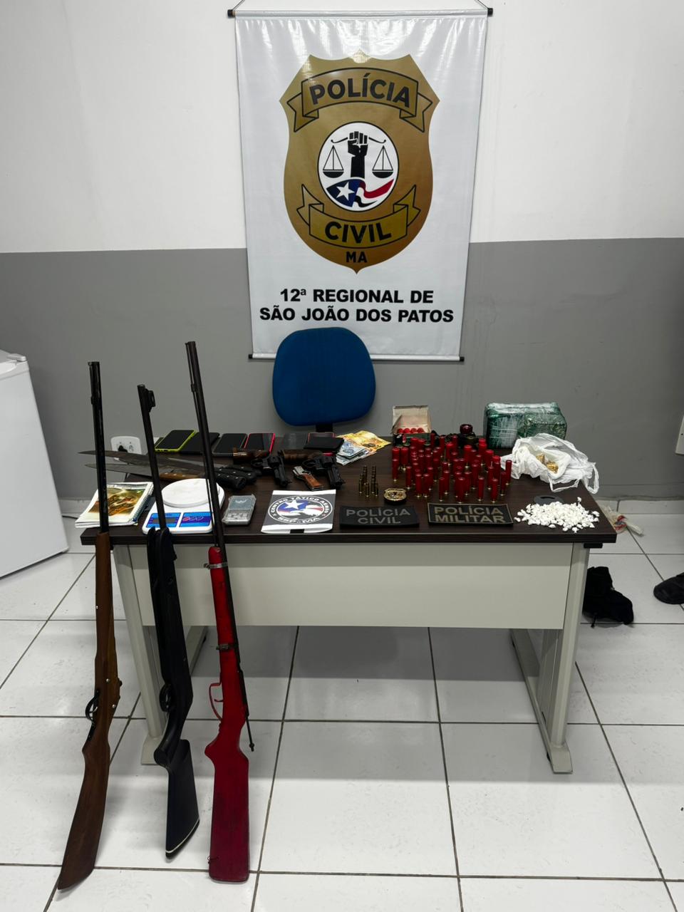 A operação foi deflagrada pela 12ª Delegacia Regional de São João dos Patos e pela Delegacia de Pastos Bons, com o objetivo de cumprir cinco mandados de busca e apreensão e quatro mandados de prisão temporária. Os alvos são investigados por tráfico de drogas, associação para o tráfico, posse ilegal de arma de fogo, roubos, furto qualificado, receptação, tentativa de homicídio e crime ambiental.